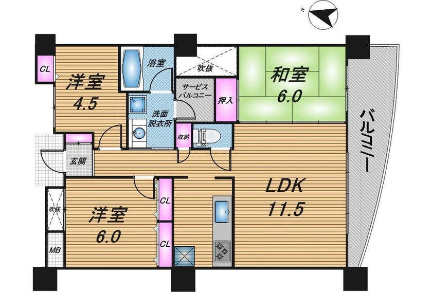 約6年前に水廻りリフォーム済みで、サービスバルコニーもあるお部屋です!