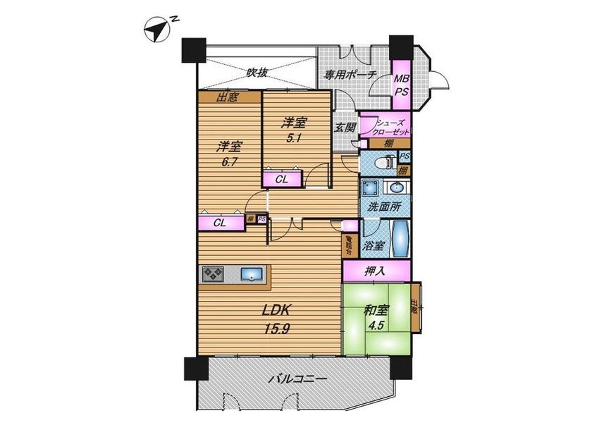 ゆったりバルコニーで日当たり良好♪