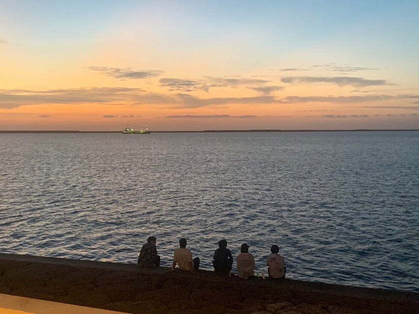 美味しいお肉と美しい夕焼け🏝